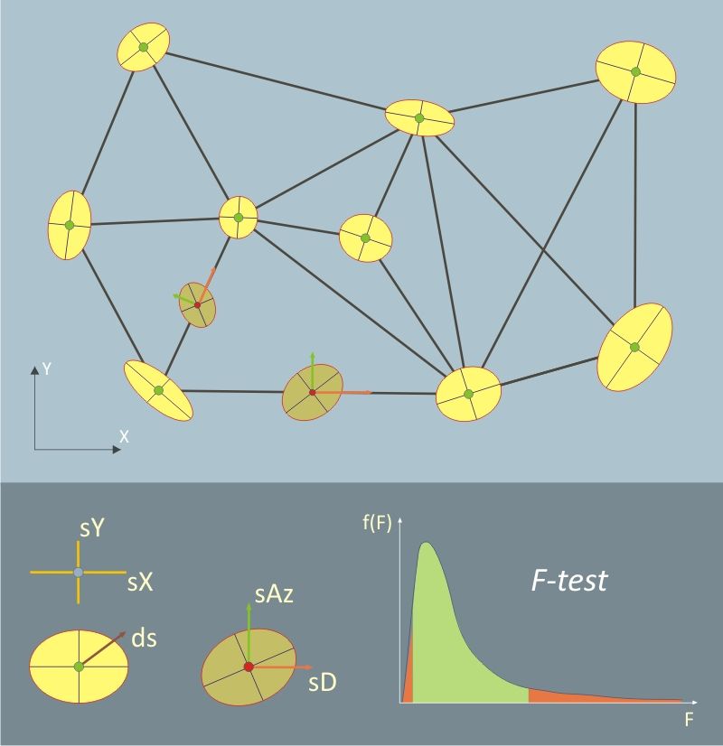 ελλείψεις σφάλματος, τα σημεία και τις μεταξύ τους σκοπεύσεις.
