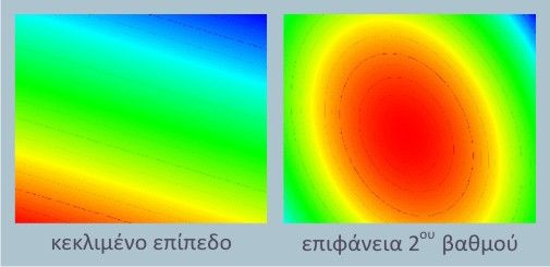 Το τοπικό γεωειδές υλοποιείται ως κεκλιμένο επίπεδο στο χώρο ή ως επιφάνεια που περιγράφεται από πολυώνυμο δευτέρου βαθμού.